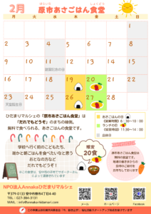 2月のあさごはん食堂は19日・26日の木曜日に開催、