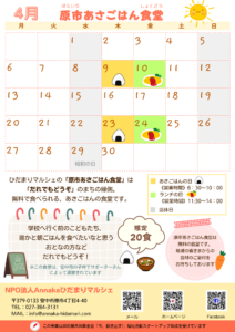 4月のあさごはん食堂は9日・23日の木曜日に開催、