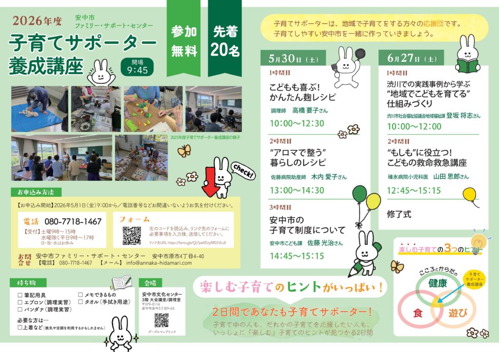 | 5月30日(土) | 14:45~15:15 | 安中市の子育て制度について 講師:安中市こども課 佐藤光治さん |